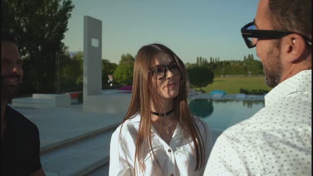 Seductive babe Alyssa Bounty has invited over two of her colleagues, Darrell and Erik to work from her home with an idea in mind. She has fancied them both since they all started working together and when she gets them alone, this naughty cock hungry hottie makes her move. She asks Erik to help her make coffee and while they are in the kitchen, Alyssa squats down and gives him a blowjob! Darrell soon joins them and gets his cock sucked too! They move into the lounge where their fun continues, with Alyssa getting her pussy and ass stuffed balls deep by both guys. She gets the best of both worlds as she takes a DP drilling and ends their threesome by lapping up plenty of cum!